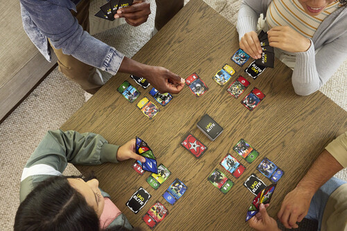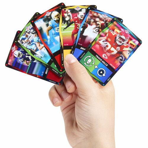 The action starts with 112 UNO Cards, plus 56 randomized NFL Player Cards and 4 collectible Foil Cards. UNO Elite NFL plays like Classic UNO, but actions like Skip and Reverse are found on NFL Player Cards. You use these cards when a player plays a card with an Elite Icon on it, and there are more than 2,000 of these collectible Player Cards to take your UNO card game to the next level. And when down to the last card, don’t forget to yell “Hut, hut, UNO!”