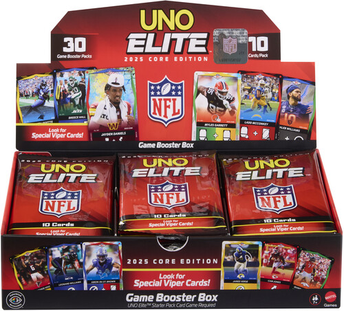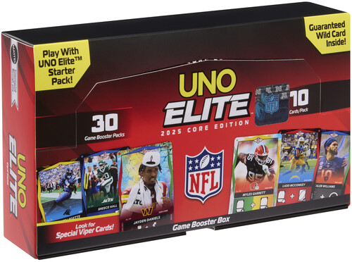 - Players can expand their Officially Licensed UNO Elite NFL roster with UNO Elite NFL Booster Sets (the UNO Elite Core Edition Starter Pack, sold separately, is required to play).