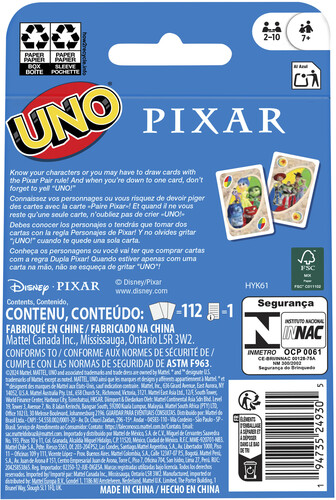 - The UNO game players love featuring images of favorite Pixar movie characters!