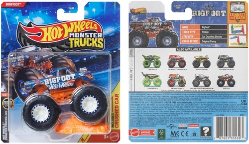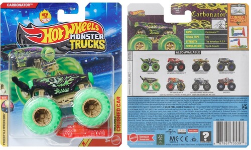 - Each Hot Wheels® Monster Truck comes with a plastic Connect and Crash crushable car for immediate smashing action.
