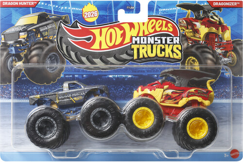 The Hot Wheels® Monster Trucks Demolition Doubles™ pack doubles the action with two Monster Trucks ready to square off in head-to-head battles!