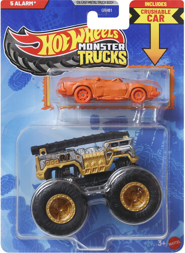 - Each Hot Wheels® Monster Truck comes with a bonus die-cast car for immediate smashing action!