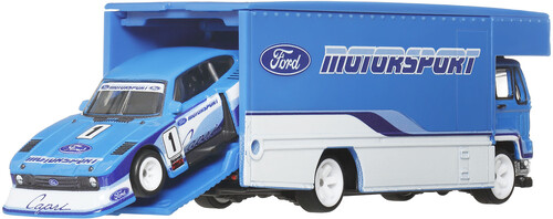 The Team Transport vehicle can really load and unload and comes with a component car. Featuring realistic castings, hot decos and an abundance of the wheels that aficionados appreciate, the collection celebrates a diverse range of racing heritage and car culture.
