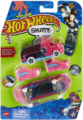 - The Hot Wheels Skate™ packs feature a fully assembled fingerboard plus a pair of cool skate shoes in cool metallic finishes