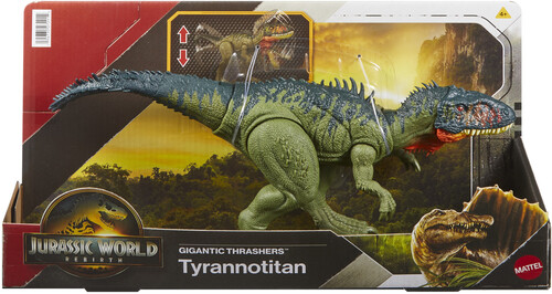 - Rampage attack! The Tyrannotitian dinosaur is brought to life with this Gigantic Thrashers action figure with 2 vicious rampage attack motions, inspired by Jurassic World Rebirth!