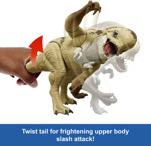 - Bring Jurassic World home! This Rumble 'N Rampage Distortus rex brings the excitement and thrills of Jurassic World Rebirth home with a movie-authentic design of this ultimate villain dinosaur.