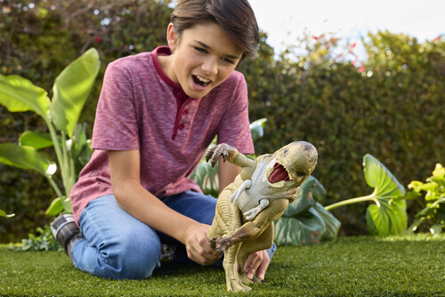 This villain dinosaur from the movie also has dual motions, with a roar and chomp and a side-to-side upper body arm swipe -- it's a total attack! Movable joints and content-accurate design and deco make the Distortus rex ready for battle moves and poses.
