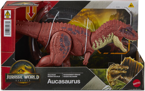 - Attack and roar! This Wild Roar Aucasaurus toy inspired by Jurassic World Rebirth has an aggressive chomp attack which can change direction, and a ferocious roar for dinosaur battle play!