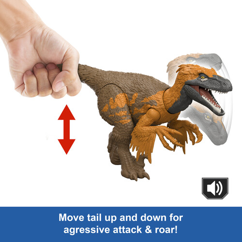 - Attack and roar! This Wild Roar Utahraptor toy inspired by Jurassic World Rebirth has an aggressive attack which can change direction, and a ferocious roar for exciting dinosaur play!
