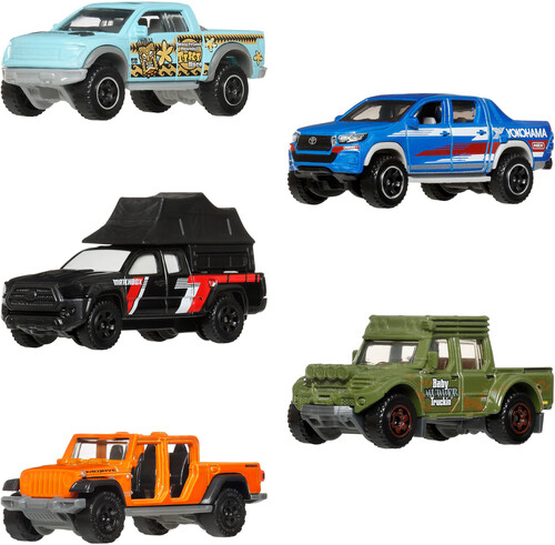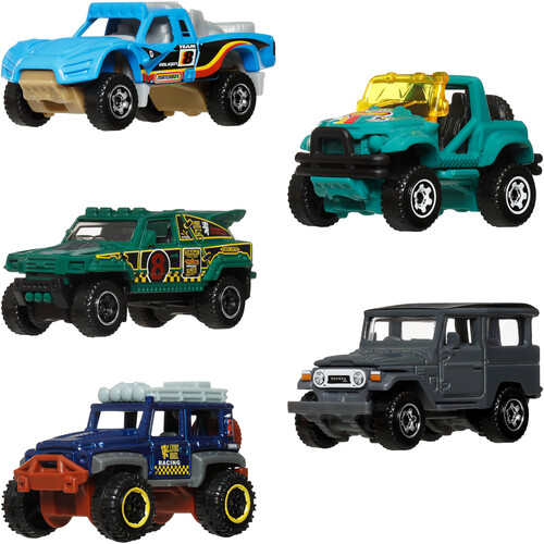 - Explore and discover new worlds with a Matchbox 5-pack of realistic toy cars and trucks.