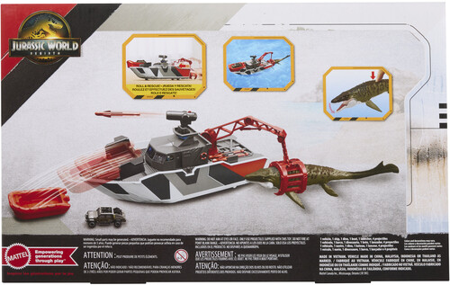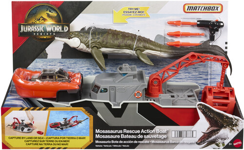 - Ideal for Jurassic fans 3-6 years old, the story possibilities are endless with the Matchbox Jurassic World Mosasaurus Rescue Action Boat playset.