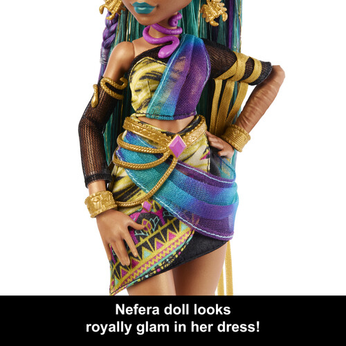 Meet Nefera De Nile! The older sister of Cleo De Nile, this Monster High doll is a royal mummy who quite literally has a heart of gold!