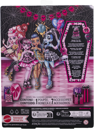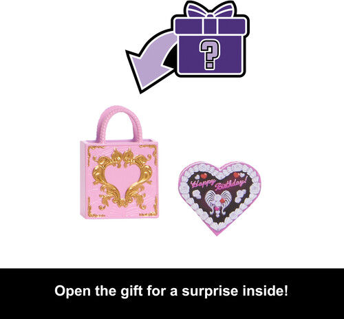 - Party-themed accessories set the scene for a Scary Sweet Birthday -- like a gift bag for Draculaura with a surprise present inside! An invite, balloon, and birthday card are also included.