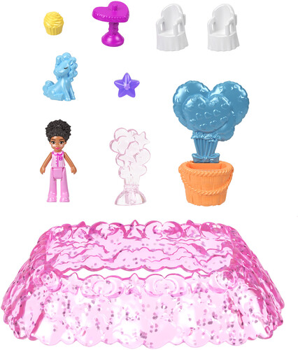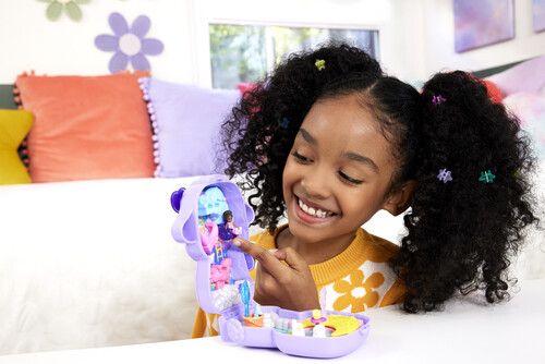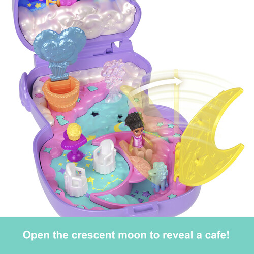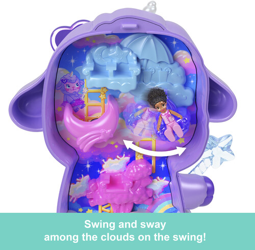 Includes Polly Pocket Cozy Dreamland Compact,1 micro doll and 9 accessories, including 1 pet.