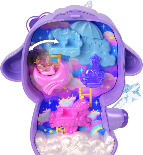 - The adorable unicorn lamb exterior has a fun dress-up feature where kids can style the playset with fashion accessories and opens to a celestial dreamland!