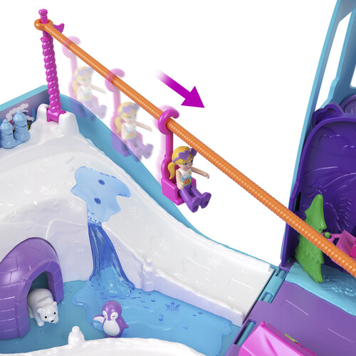 Other micro Polly Pocket vehicles are also compatible! Hang out in the igloo with polar bear friends after hitting the slopes or catch a wave alongside pink dolphin pal there's so much to do! Pack up the playset for on-the-go fun anytime, anywhere.