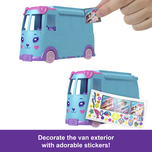 - The pet-themed van features working wheels with a sticker sheet for decorating and opens to the ultimate outdoor adventure with animals and friends!