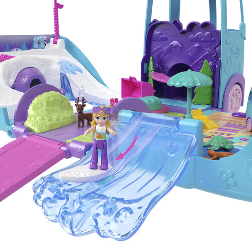 - Hop in the micro van to get from the beach to the snow and back again! Other micro Polly Pocket vehicles are also compatible within the playset.