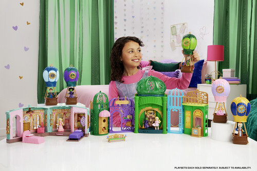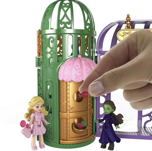 The modular playset comes with two 2.75-inch small dolls – Elphaba and Glinda – 5 play spaces that can be arranged to create different configurations and 15 storytelling accessories to recreate iconic movie moments and beyond.