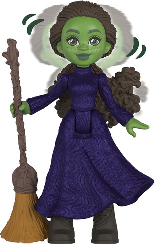 - The playset features two 2.75-inch small dolls – Elphaba and Glinda – with heads that bobble and wearing signature looks from the film, including Elphaba’s broom!