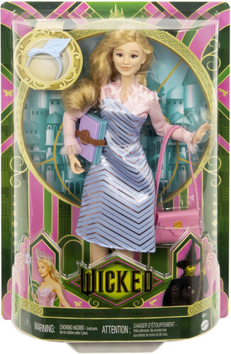Includes 1 Glinda fashion doll wearing removable dress and heels, plus school bag and textbook accessory.