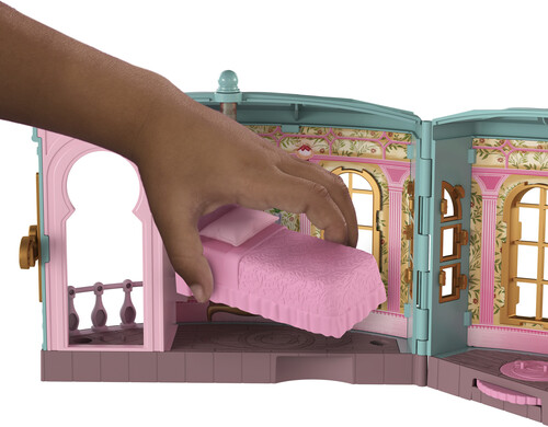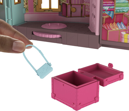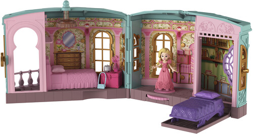 The playset comes with a 2.75-inch Glinda doll, 3 play spaces and nine storytelling accessories to recreate iconic movie moments and beyond. Glinda can swing from the chandelier or spin on the platform to reveal her roommate, Elphaba’s, hidden bed space!