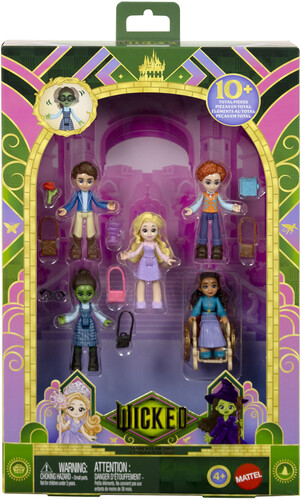 - Makes an amazafying gift for kids ages 4 years and older to imagine exploring Shiz University with Elphaba, Glinda, Nessarose, Fiyero and Boq from Universal Pictures’ Wicked.