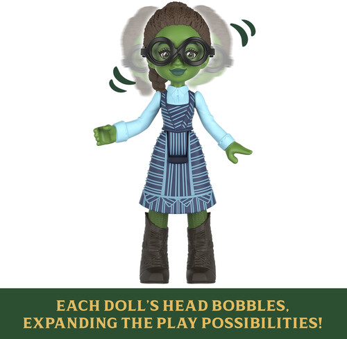 - Elphaba, Glinda, Nessarose, Fiyero and Boq all measure 2.75-inches, wear Shiz uniforms and their heads bobble for extra fun!