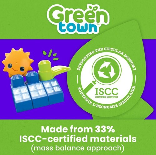 - This MEGA BLOKS Green Town building toy is made from at least 33% ISCC-certified plastics (mass balance approach)