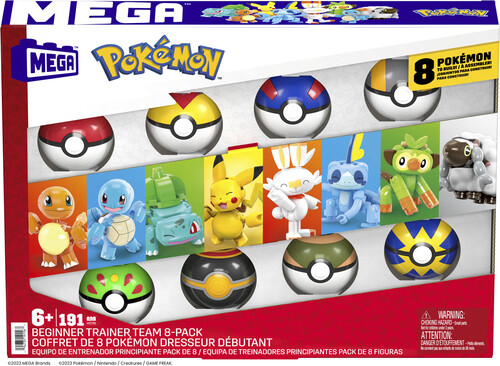 Start your Trainer journey with this 8-pack Poké Ball bundle. Build first partner Pokémon Bulbasaur, Charmander , Squirtle, Scorbunny, Grookey, and Sobble. Pikachu and Wooloo complete the set, for a full team ready for play! Combine with other MEGA Pokémon building sets for even more fun.