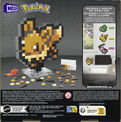Decorate your space and build some of your favorite Pokémon with MEGA. Build Eevee one brick at a time to create a retro-inspired figure, featuring official Pokémon Pixel Art. Display it on your desk, or mount it on the wall to show off your love of Pokémon. Pair with other Pokémon in the series; each sold separately.