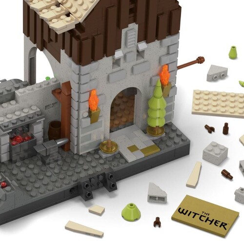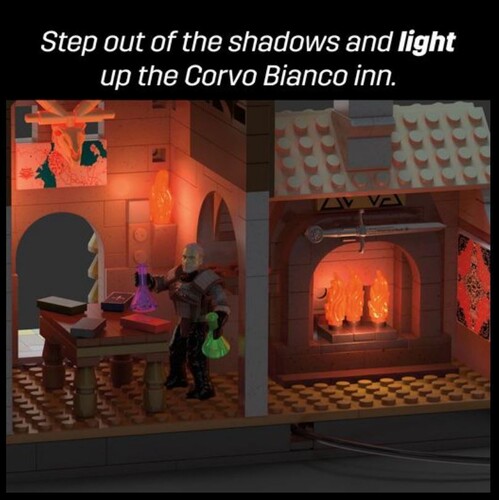 - Buildable Corvo Bianco home with light-up fireplace (2-mode LEDs), trophy Leshen skull and lots of other The Witcher Easter eggs