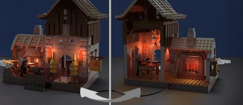 This building set also includes a Geralt micro action figure and LED lights with flicker mode to imbue the house during evening quests.