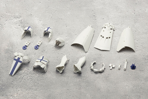 Part of the skirt armor assembly is optional,allowing it to be used with characters of different builds such as the female-body style Principal when paired with the dedicated frame. The kit includes two types of attachments that allow the unit to be used as either a cape or a long skirt.