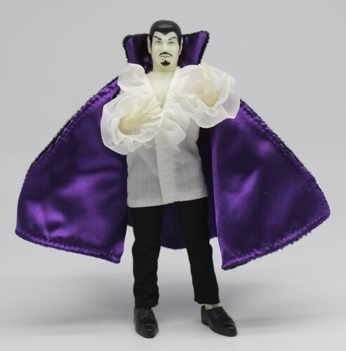 Hailing from Transylvania, Count Dracula is a vampire, 500 years old, with supernatural powers and weaknesses. He can bite people and turn them into vampires. This figure comes with detailed blood droplets on his fangs.
