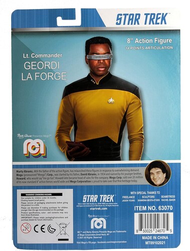 Mego is proud to continue its storied history with the famed Star Trek brand by bringing the iconic Geordi LaForge to action figure collectors and Trek fans alike!