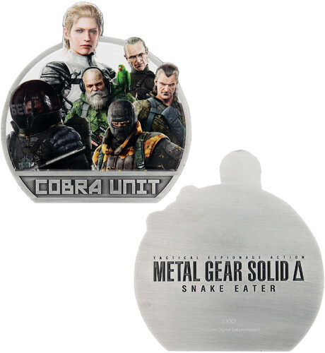Comprising of members The Boss, The Sorrow, The Fury, The End, The Fear, and The Pain, Cobra Unit are the antagonists of Metal Gear Solid Delta: Snake Eater. The group of super-soldiers are pitted against FOX agent Naked Snake as he infiltrates the USSR and attempts to prevent World War 3, and all six are depicted on this limited edition medallion. Limited to 5,000 worldwide, each printed medallion is individually numbered to the reverse and comes with a display stand in its presentation box.