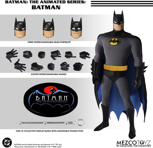 The One:12 Collective Batman captures the Dark Knight in his signature animated style, inspired by the noir-style artistry of the groundbreaking series. A cape with an integrated posing wire and three interchangeable head portraits with varying facial expressions are included – allowing for a variety of distinct looks from the series.