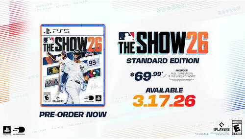 ©2026 Sony Interactive Entertainment LLC. MLB and MiLB trademarks and copyrights are used with permission of Major League Baseball. Visit MLB.com and MiLB.com. Officially Licensed Product of MLB Players, Inc. MLBPA trademarks, copyrighted works and other intellectual property rights are owned and/or held by MLBPA and may not be used without the written consent of MLBPA or MLB Players, Inc. The Baseball Hall of Fame and Museum trademarks and copyrights are used with permission of the National Baseball Hall of Fame and Museum, Inc., as applicable. Visit the official website of the Hall of Fame at BaseballHall.org. Trademarks, copyrights, names, images and other proprietary materials are used with permission of World Baseball Classic, Inc.