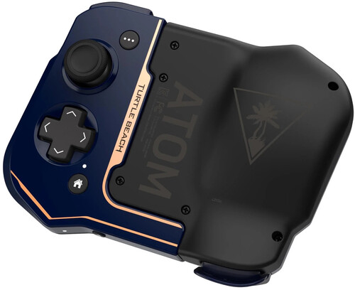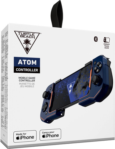 The Turtle Beach Atom iOS Mobile Game Controller is built for cloud gaming on iPhone 11 and newer, using a low‑latency Bluetooth connection and a unique two‑piece modular design that magnetically snaps together for portability.
