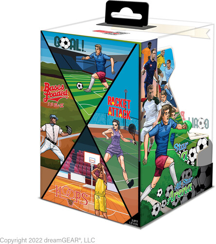 Includes fully playable versions of GOAL!™, BASES LOADED™ 1,2,3 & 4, RACKET ATTACK™ and HOOPS™. The All-Star Arena Pico Player features a full color 2" screen to brightly display all 7 titles and is fine-tuned for hours of play through its emphasis on ergonomics and compact design.