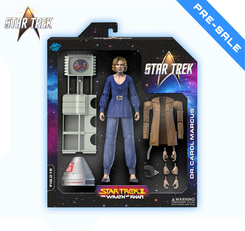 This 1/10-scale action figure from Dr. Carol Marcus from Star Trek II: The Wrath of Khan arrives directly from the Mutara sector complete with a communication terminal and cargo container from science station Regula I. Plus, the articulated figure has removable arms, allowing her to be posed wearing her brown field jacket for a visit to the Genesis Cave.