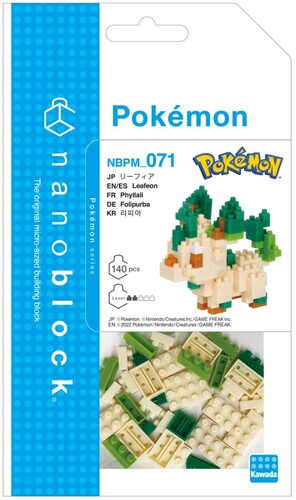 Leafeon from Nanoblock's Pokemon Collection series stands approximately 1.9" tall and has 140 pieces.