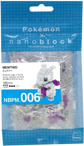 Mewtwo from Nanoblock's Pokemon Collection series stands approximately 2.3" tall and has 120 pieces