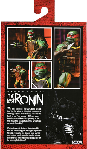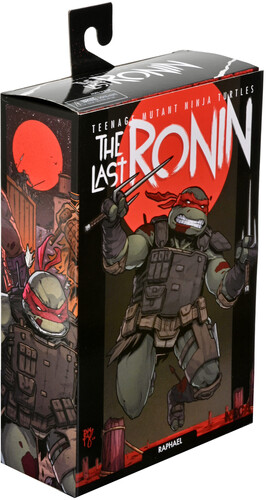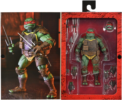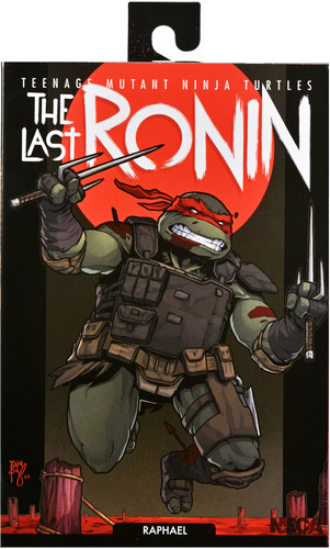 This Ultimate Raphael action figure is authentic to the comic book depiction and stands in 7" scale with over 20 points of articulation. Includes two interchangeable head sculpts, interchangeable hands, sais, arrow, and throwing knife. Comes in collector-friendly window box packaging with opening flap featuring a custom illustration by The Last Ronin artist Ben Bishop.