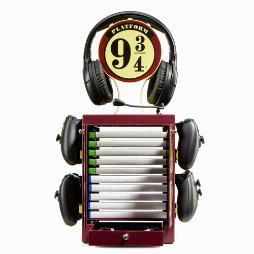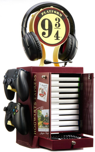 The ideal gaming accessory for Harry Potter fans who want to keep their Wizarding Worlds nice and tidy; this official locker is styled after the iconic locomotive and features the iconic Platform 9 ¾ logo on the headphone mount with the doors showing various images from the series.