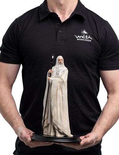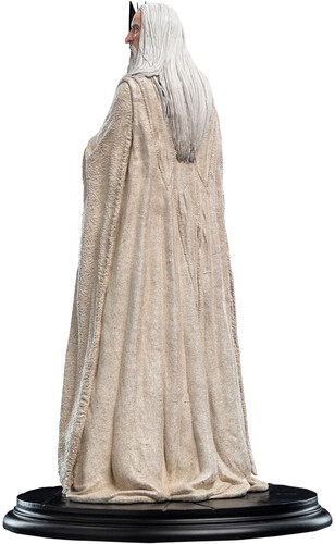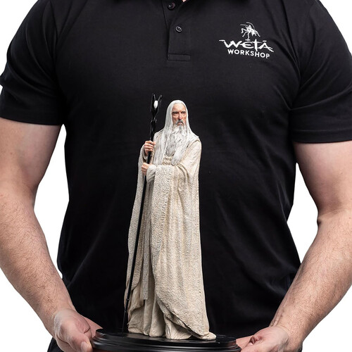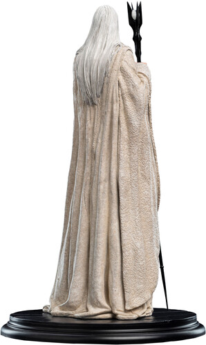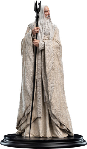 - Features Saruman the White in his signature pose and clothing, as seen in The Lord of the Rings Trilogy