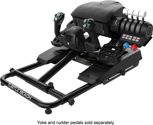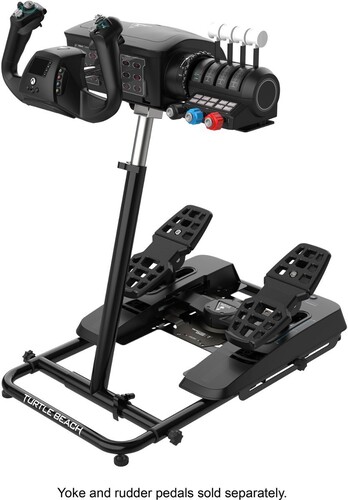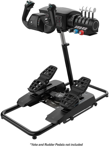 Complete your flight or racing simulation setup with the Turtle Beach VelocityOne Stand for the VelocityOne Flight Yoke System, VelocityOne Rudder Universal Rudder Pedals, and other flight simulation and racing simulation accessories. Built-in quick release latch lets you loosen the main shaft to adjust the height, angle, and length of the Stand to adapt to your size and environment. Plus, you can tilt both the upper mounting platform for a yoke or wheel, and lower platform to set the perfect angle for a set of racing pedals or rudder pedals. Solid steel mounting platforms are predrilled to work with VelocityOne Flight & VelocityOne Rudder products and are also fully compatible with other 3rd party simulation accessories. Anti-wobble, adjustable rubber feet keep the Stand firmly planted, and a convenient fold flat design lets you easily stow away your setup without needing to unmount your accessories when not in use.