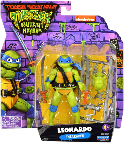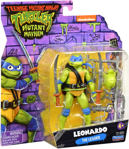 Leonardo figure is 4.5" tall and designed to match his movie character. Set includes his signature katana and comes in a unique Mutant Mayhem package!