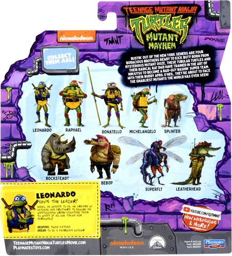 From Playmates. Get ready for the Mutant Mayhem figures and accessories, based on the new CG animated Teenage Mutant Ninja Turtles movie! Leonardo is the Turtles'